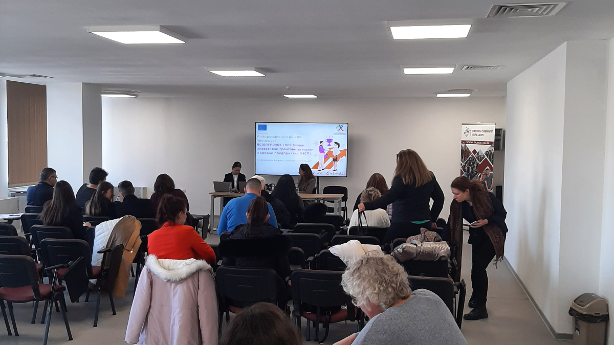 На 04.02.2025г., експерти от Главна дирекция „Европейски фондове за конкурентоспособност” към Министерството на иновациите и растежа проведоха информационен ден на тема актуалната за прием на проектни предложения процедура - BG16RFPR002-1.005 „Малки иновативни грантове за малки и средни предприятия (МСП)” по Програма „Научни изследвания, иновации и дигитализация за интелигентна трансформация“ 2021-2027.