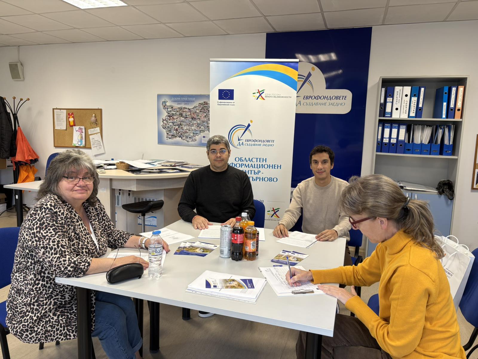 Срещата се състоя в офиса на ОИЦ – Велико Търново и премина в дух на активно сътрудничество и обмен на идеи. Основен акцент в разговора бяха възможностите за финансиране на проекти в сферата на образованието, социалните дейности и културата по линия на различни европейски и национални програми. Обсъдени бяха конкретни примери за добри практики, както и начини за по-широко включване на местните институции, училища, читалища и неправителствени организации в процеса на кандидатстване по текущи и предстоящи процедури.