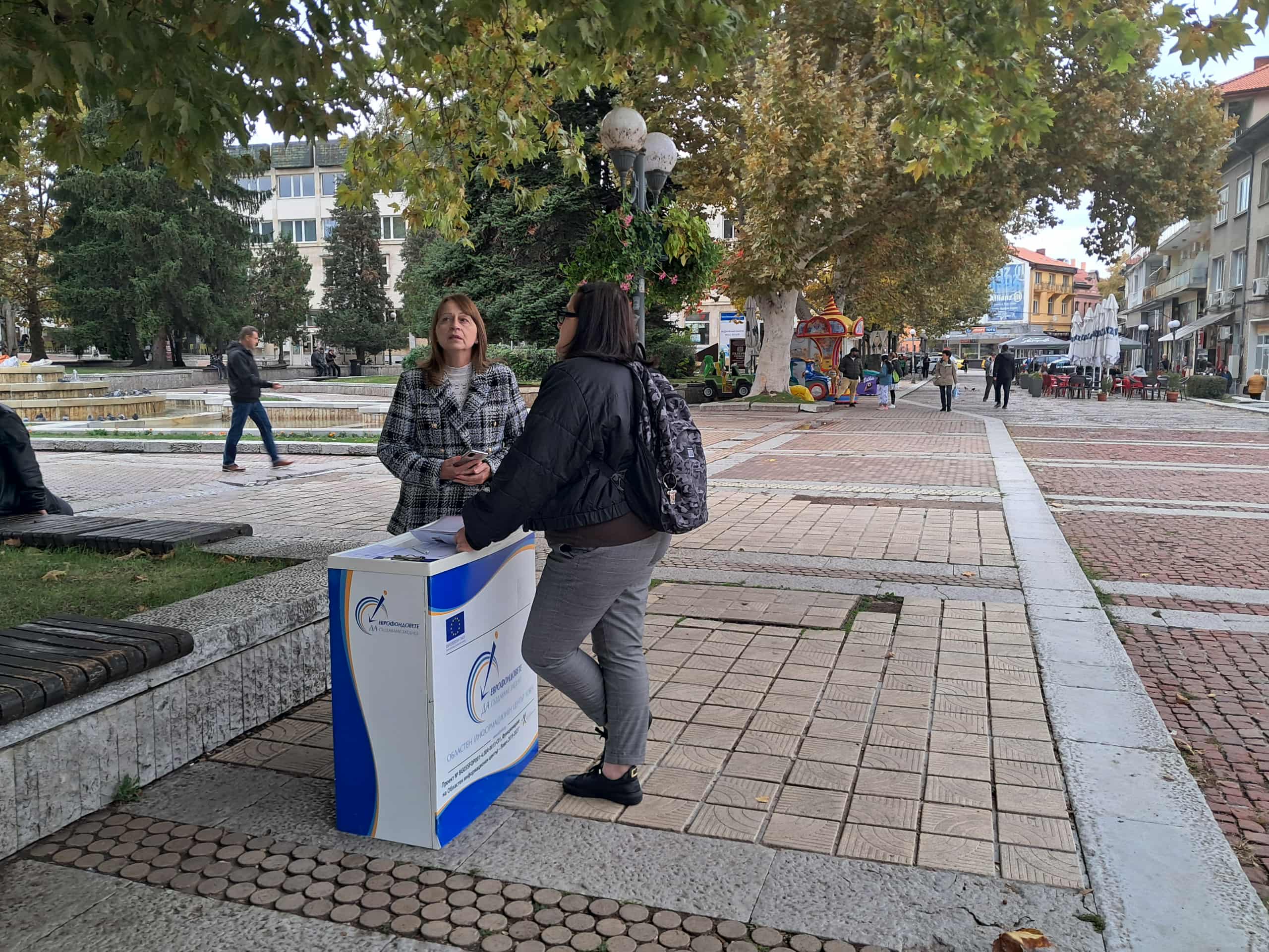 На 13 октомври/понеделник/ 2025 г. екипът на Областен информационен център – Ловеч проведе петото си публично информационно събитие на открито в рамките на цикъла срещи в общините от областта. Мобилният щанд беше разположен от 11:00 часа на Централния площад в гр. Троян и привлече вниманието на представители на местната администрация, бизнеса, неправителствени организации и граждани.