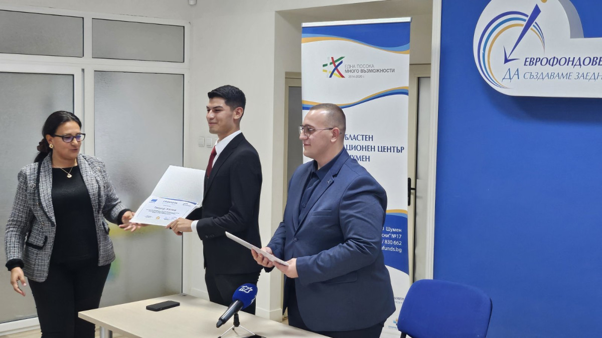От името на Областният информационен център – Шумен, учиниците получиха Грамота за принос в популяризирането на европейските програми и инициативи сред младите хора, както и за проявен интерес и познания в сферата на европейското финансиране.