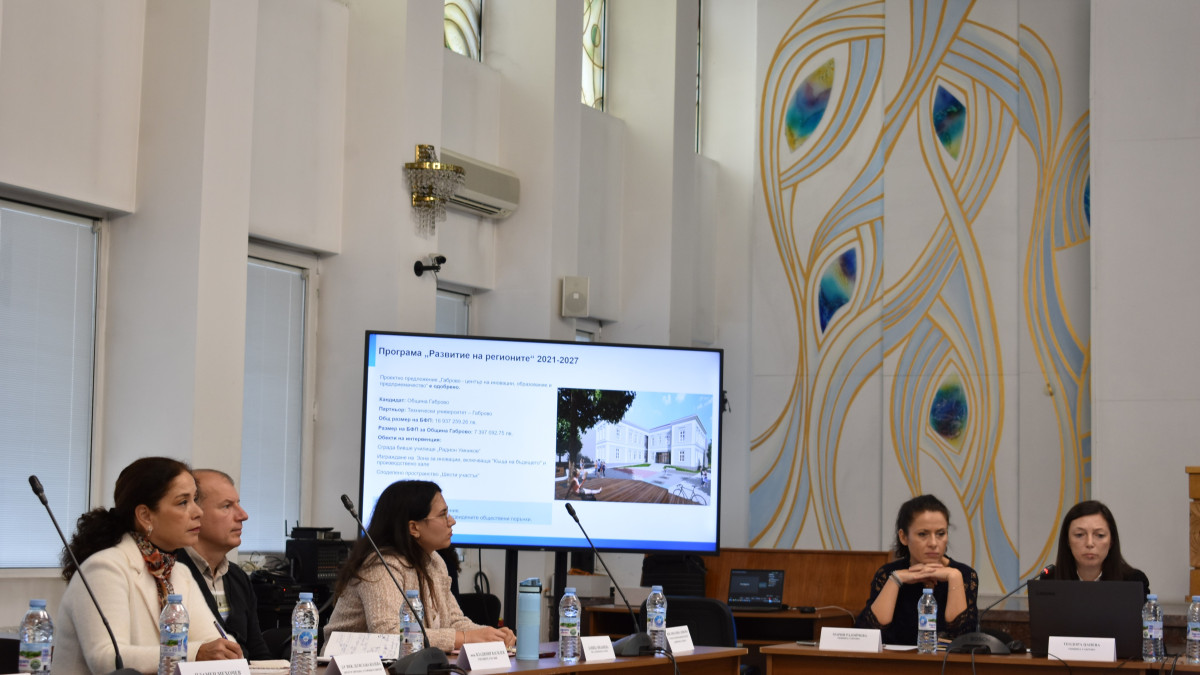 Участниците в заседанието се запознаха и с напредъка по одобрените интегрирани териториални инвестиции (ИТИ) от първа фаза. „Габрово – център на иновации, образование и предприемачество“ включва изграждането на Зона за иновации, модерни лаборатории по автоматизация и виртуална реалност и ново споделено пространство „Шести участък“. ИТИ „Брегове на съвремието“ предвижда модернизация на Център „Кристо и Жан-Клод“, Дома на хумора и сатирата, спортна зала „Орловец“ и крайречната зона на Янтра, както и изграждане на FabLab и MediaLab за млади творци и предприемачи.