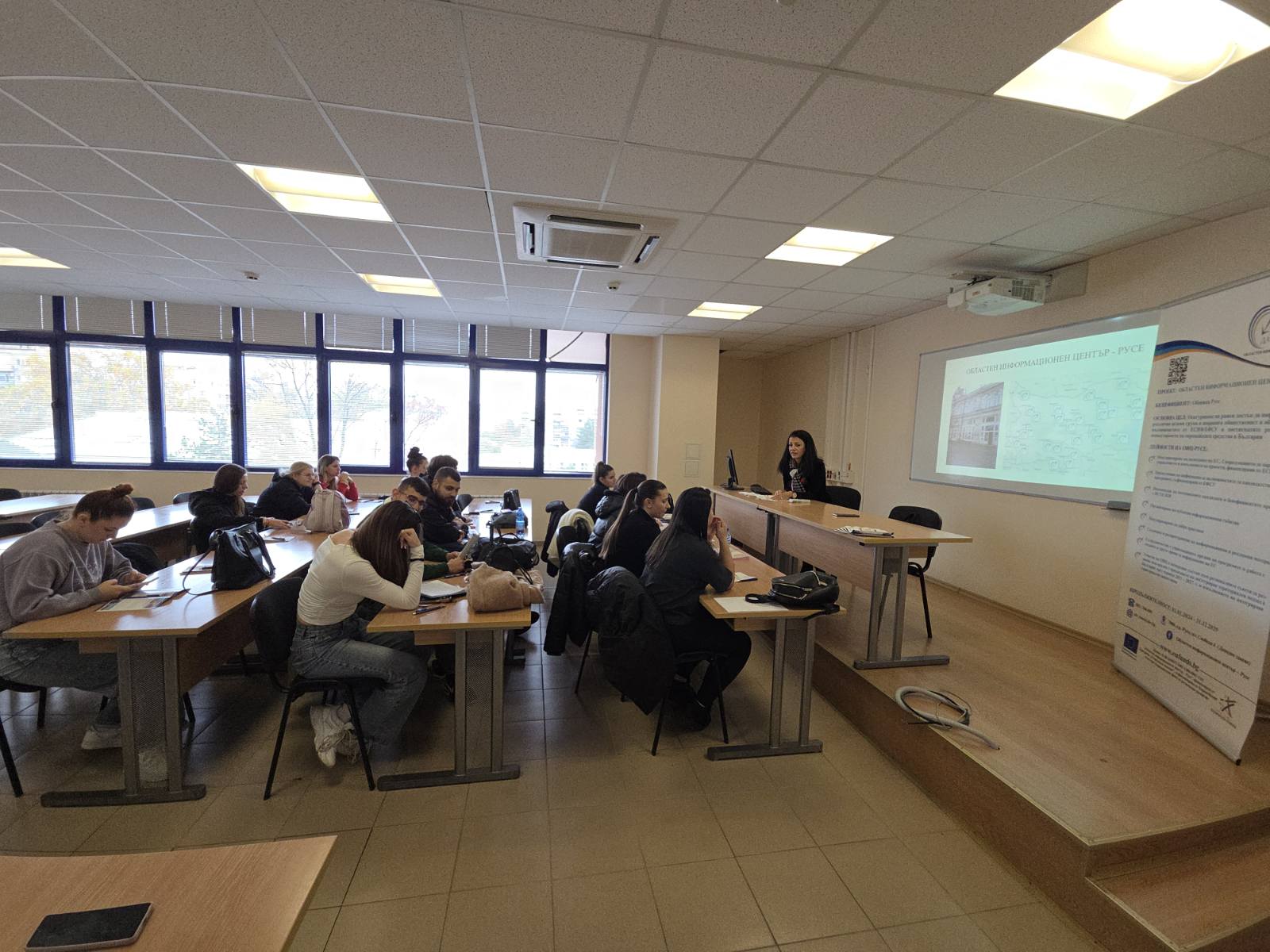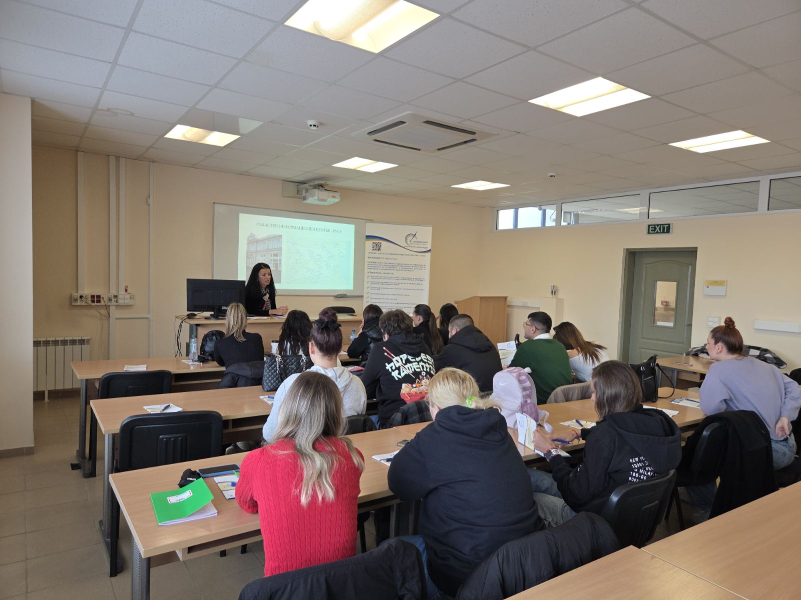 Областният информационен център – Русе проведе информационна среща в Русенския университет „Ангел Кънчев“ със студенти от трети курс, специалност „Бизнес и мениджмънт“, по покана на доц. Даниел Павлов.