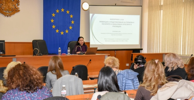 🔸 Целта на срещата бе да представи възможностите за кандидатстване на училищата по мерки, насочени към превенция на агресията, подобряване качеството на образованието, достъп до образование на уязвими групи и приобщаване, съфинансирани от Европейските фондове.