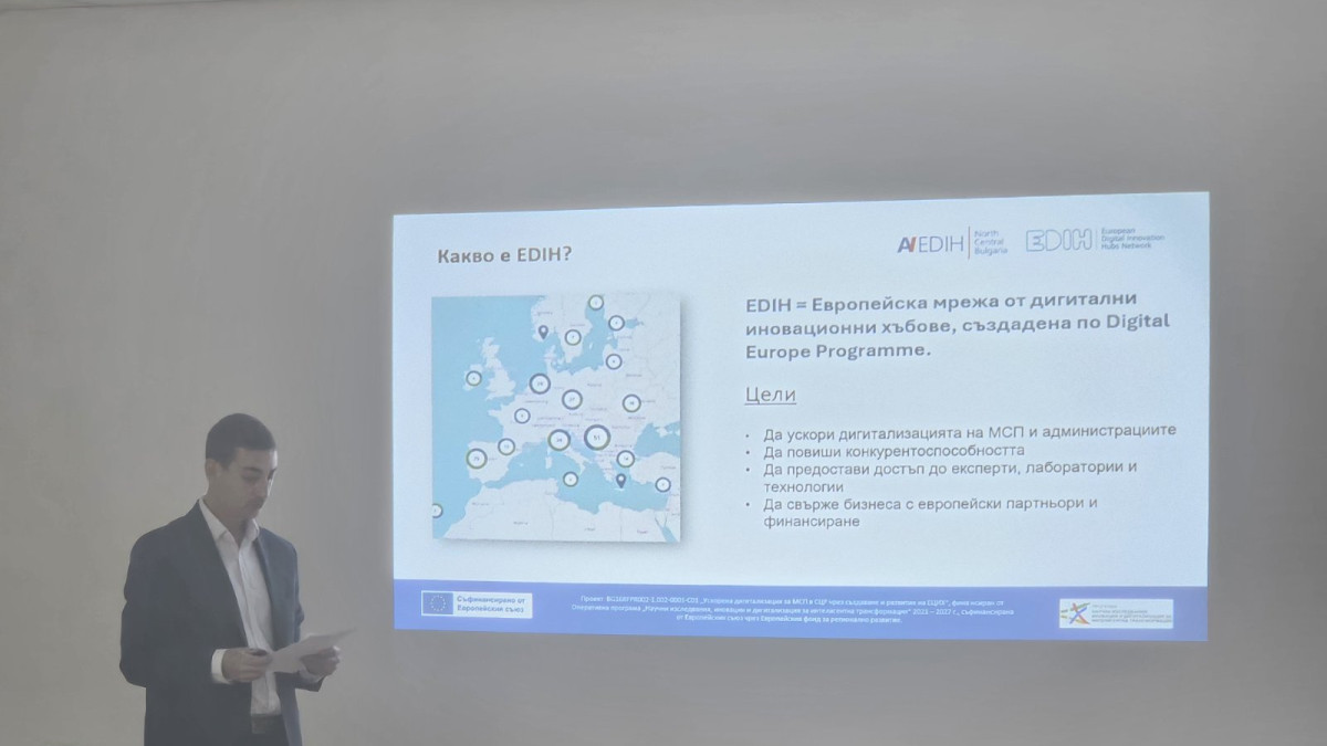 В Габрово се проведе Ден на отворените врати на Европейския цифров иновационен хъб (ЕЦИХ) за Северен централен район – структура, съфинансирана от Европейския съюз по линия на Програма „Научни изследвания, иновации и дигитализация за интелигентна трансформация“ 2021–2027 и европейската инициатива за мрежа от цифрови иновационни хъбове. Хъбът има за цел да подпомага предприятията и публичните организации в процеса на дигитализация чрез тестови услуги, внедряване на технологии и обучения.