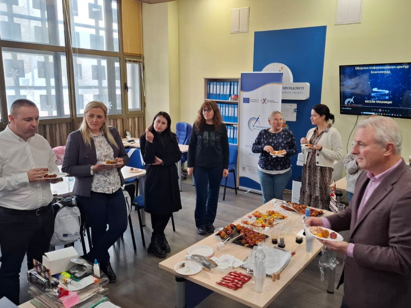 Областен информационен център – Благоевград постави началото на празничния сезон като събра партньори и приятели на нетрадиционна работна среща. Екипът ни посрещна представители на организации, институции и съратници в нелеката задача да разпространяваме европейската кохезионна политика в Благоевградска област. По време на срещата споделихме успехи и предизвикателства, които срещнахме в изпълнението на проекти с европейско финансиране през 2025 г. и обсъдихме целите си за новата година.