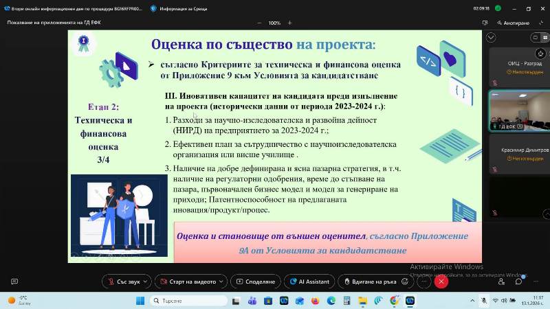 В платформата Webex се състоя вторият онлайн информационен ден по процедура „Зелени и цифрови партньорства за интелигентна трансформация” на Програма „Научни изследвания, иновации и дигитализация за интелигентна трансформация” (ПНИИДИТ) 2021-2027 г.