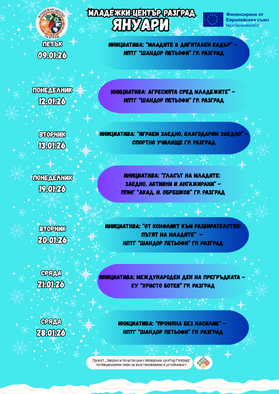Богата е програмата за инициативи през януари на Младежкия център в областния град.