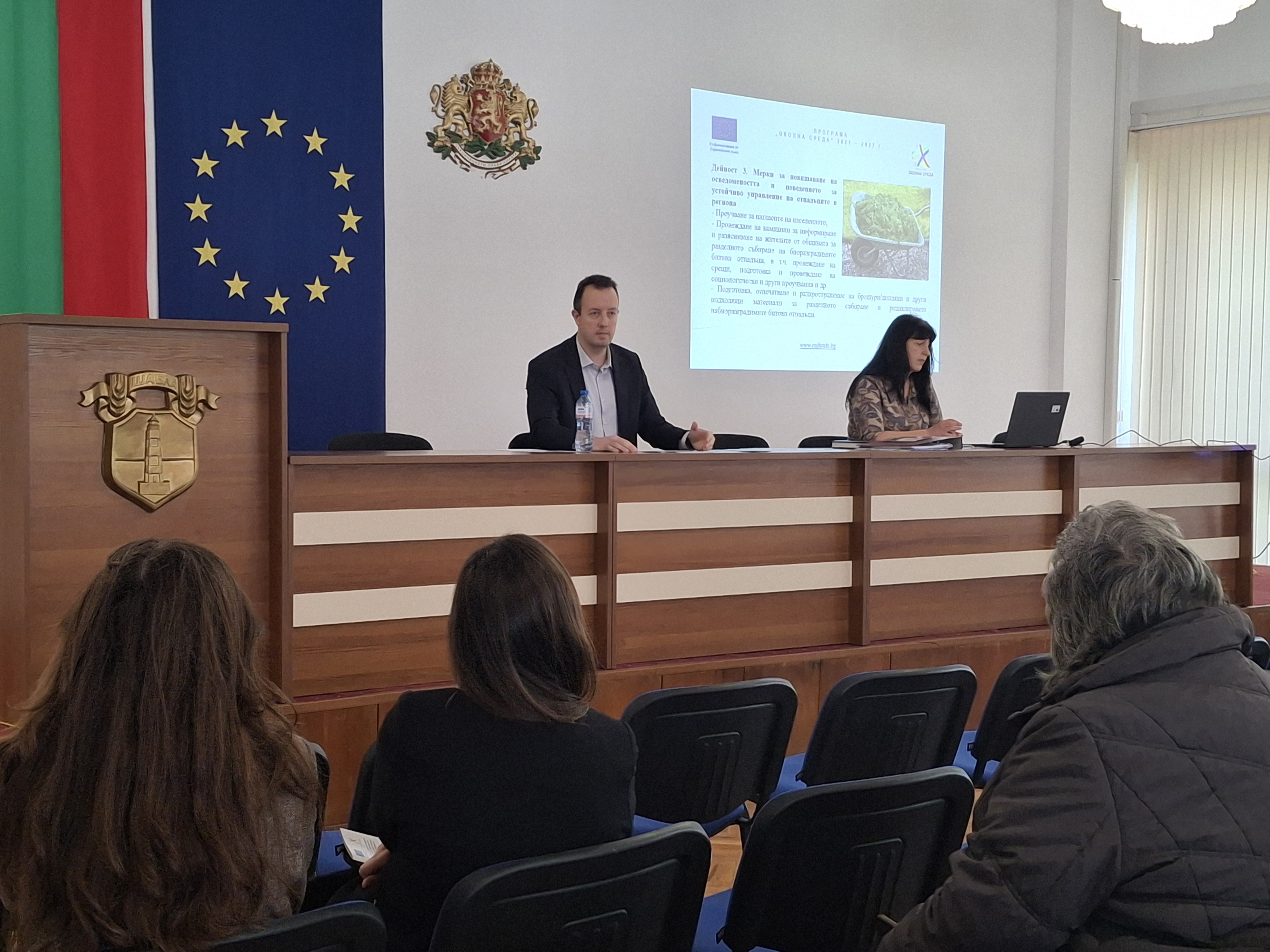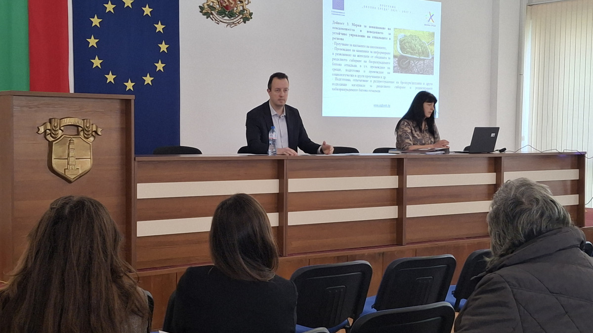 Петър Атанасов, зам.-кмет на община Шабла представи целите, дейностите и очакваните резултати по проекта. Основната цел е намаляване на количеството депонирани битови отпадъци чрез осигуряване на капацитет за компостиране на разделно събрани зелени и биоразградими отпадъци.