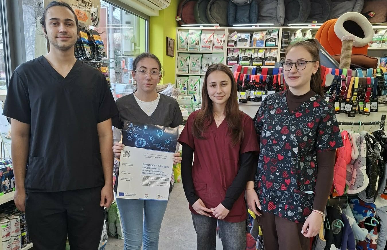Ученици от Националната професионална гимназия по ветеринарна медицина „Проф. д-р Димитър Димов“ – Ловеч участват активно в Дейност 8 по проект BG05SFPR001-3.001-0001 „Модернизиране на професионалното образование и обучение“. Проектът се реализира по Програма „Образование“ 2021–2027, съфинансирана от Европейския съюз.