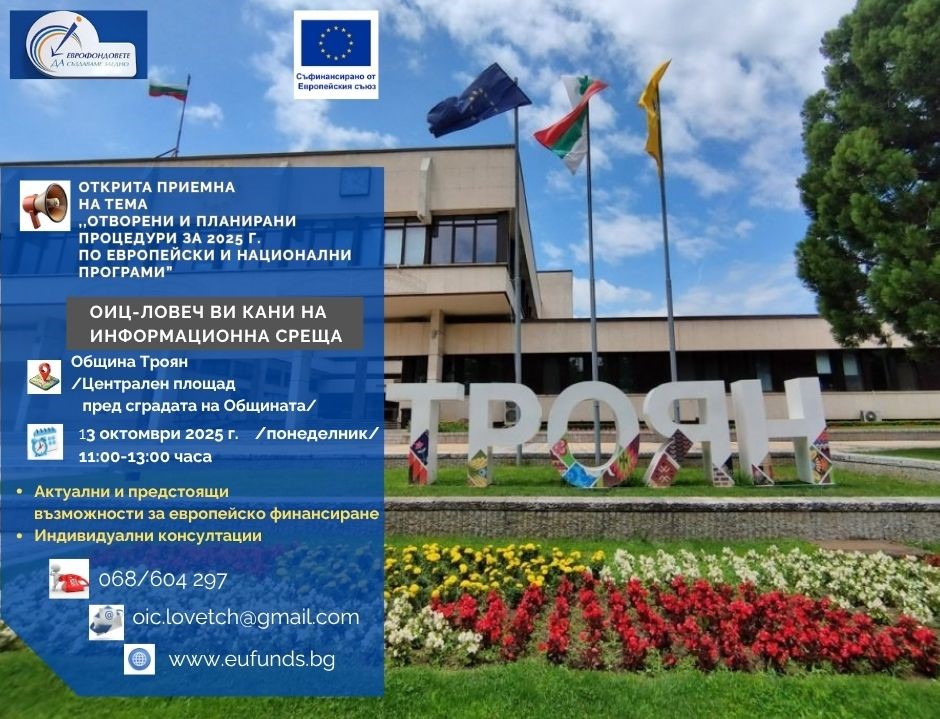 На 13 октомври 2025 г., от 11:00 ч., Областен информационен център – Ловеч ще проведе публично информационно събитие на открито в град Троян.