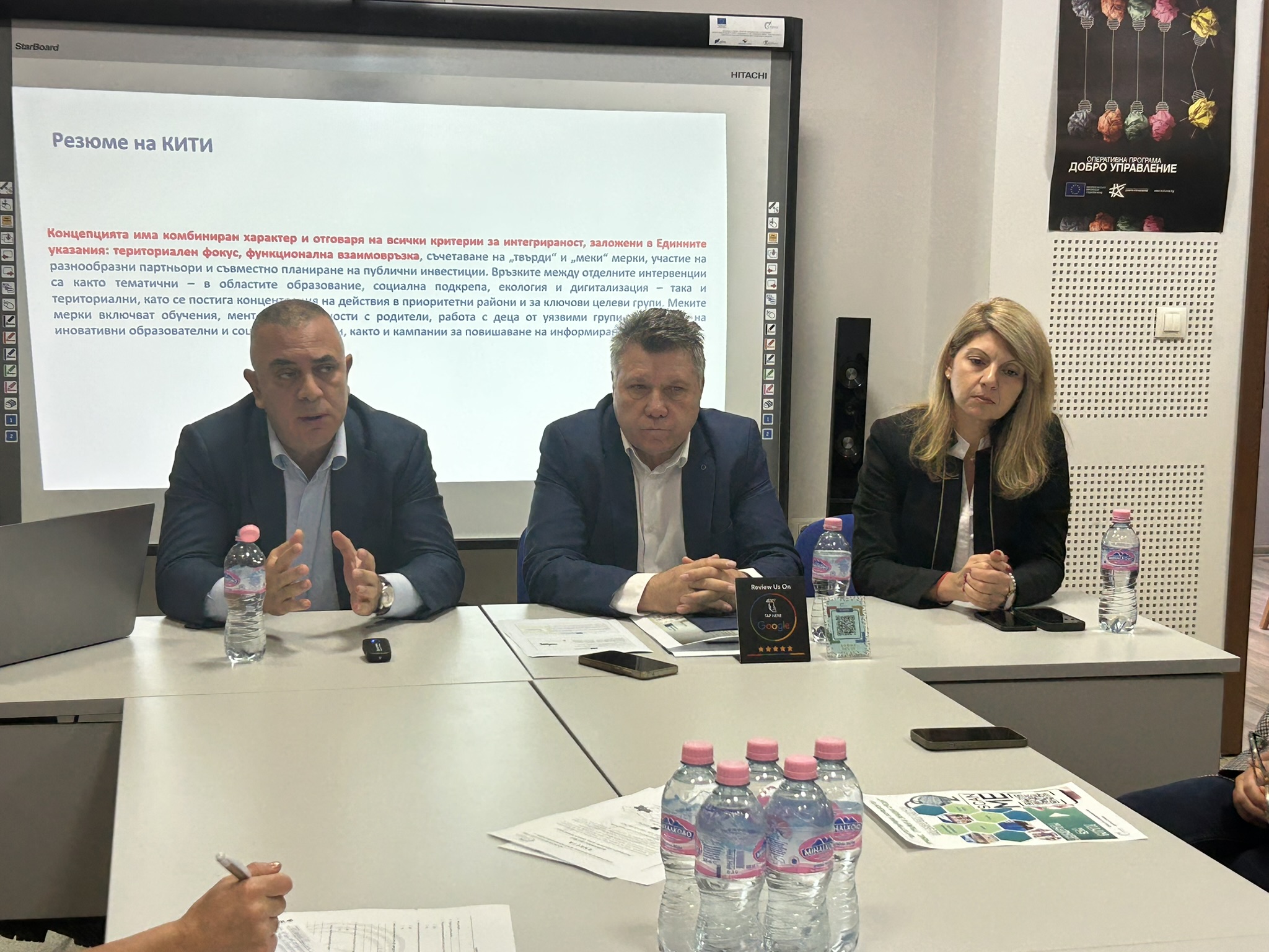 Екипът на Областен информационен център Сливен (ОИЦ) проведе две обществени обсъждания на Концепция за интегрирани териториални инвестиции (КИТИ) BG16FFPR003-2.003-0023 „Интегрирани хоризонти: учене, грижа и зелена среда“ по Процедура BG16FFPR003-2.003 „Концепции за интегрирани териториални инвестиции (КИТИ) – 2“, с водещ партньор Община Сливен и партньори Община Котел, Бургаски свободен университет и МБАЛ „Д-р Иван Селимински“ - Сливен.
