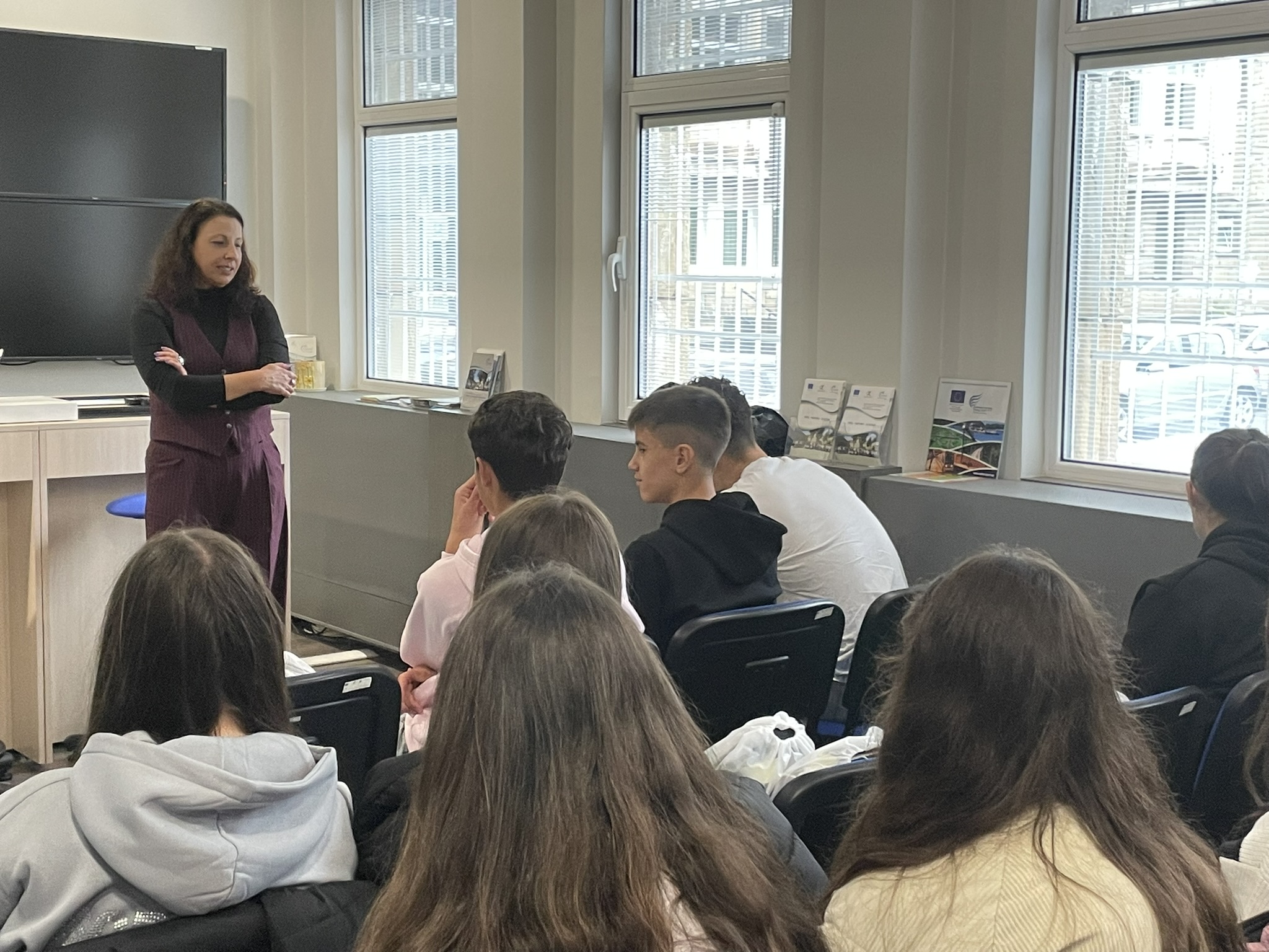 Срещата беше специално посветена на младите хора – на техните въпроси, любопитство и желание да разберат как Европейският съюз инвестира в тяхното бъдеще. В достъпна форма учениците получиха информация за различните европейски програми – от подкрепа за образование, обучение и младежки инициативи, през развитие на предприемачески идеи, до участие в проекти, които реално променят средата в града и региона.