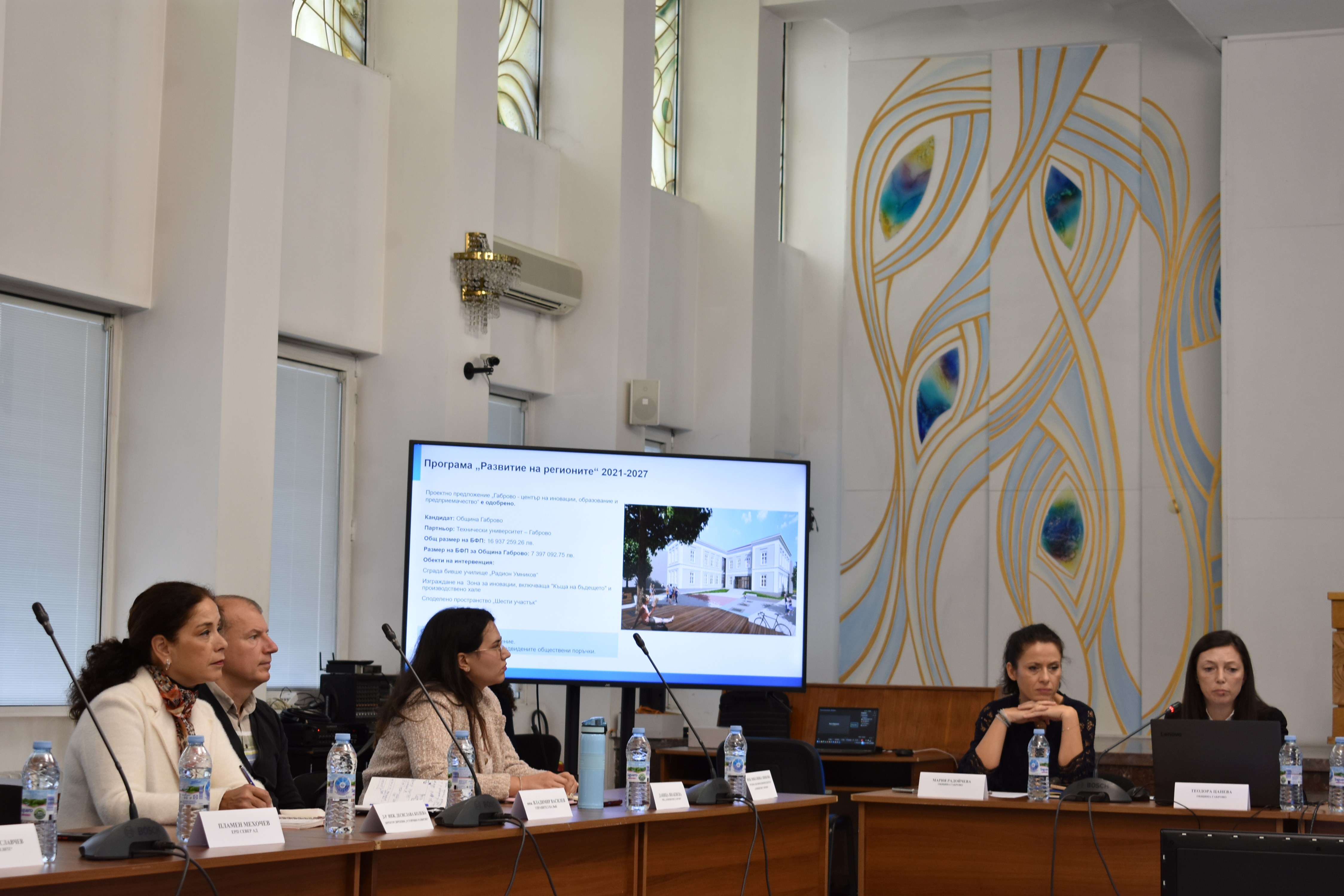 Участниците в заседанието се запознаха и с напредъка по одобрените интегрирани териториални инвестиции (ИТИ) от първа фаза. „Габрово – център на иновации, образование и предприемачество“ включва изграждането на Зона за иновации, модерни лаборатории по автоматизация и виртуална реалност и ново споделено пространство „Шести участък“. ИТИ „Брегове на съвремието“ предвижда модернизация на Център „Кристо и Жан-Клод“, Дома на хумора и сатирата, спортна зала „Орловец“ и крайречната зона на Янтра, както и изграждане на FabLab и MediaLab за млади творци и предприемачи.