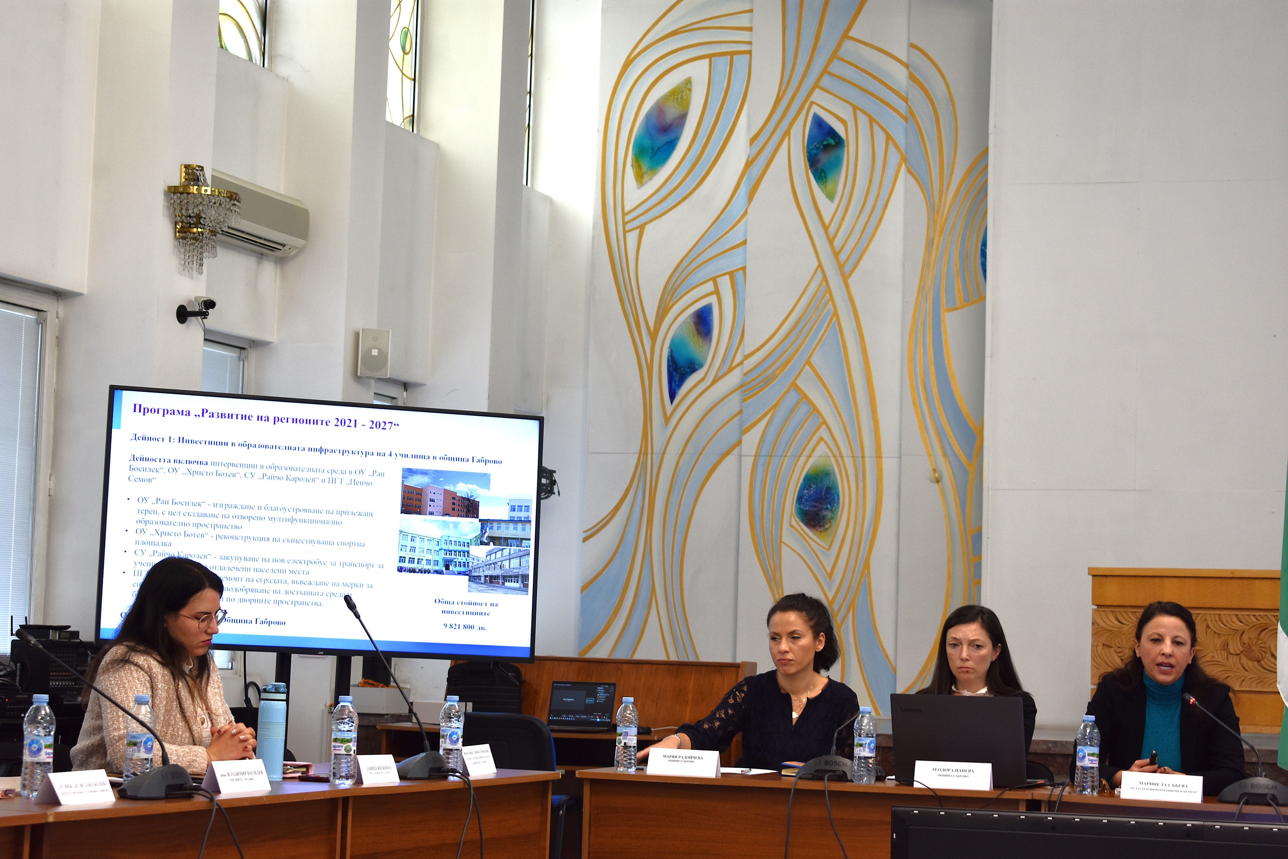 В рамките на заседанието Областният информационен център – Габрово, чрез управителя Маринела Събева, представи резултатите от проведените медиации и публични консултации по Концепцията за интегрирани териториални инвестиции „Синергия за нови възможности“. Консултациите очертаха приоритети за развитие на социалната и образователната инфраструктура, подобряване на достъпа до здравни и културни услуги и интегриране на зелени решения в градската среда.
