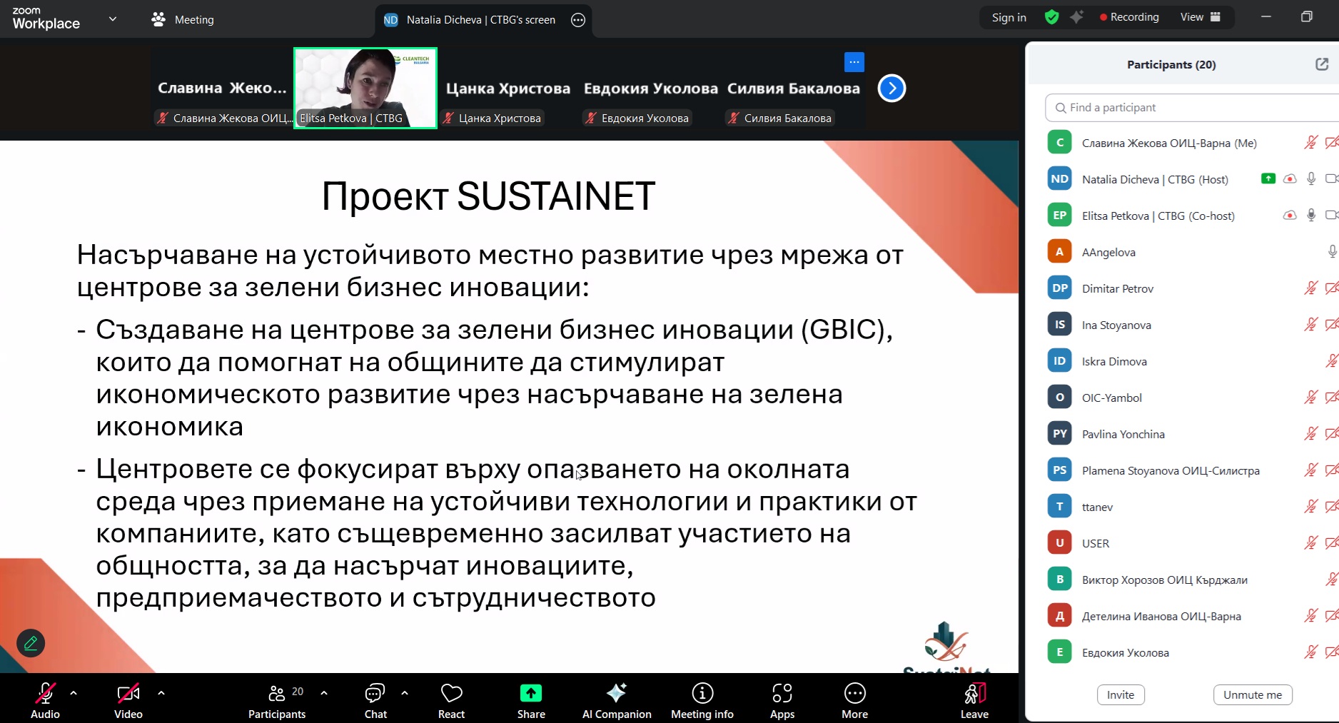 Областният информационен център-Варна се включи в семинар „Модели за подпомагане на зелената трансформация на общини и МСП“, организиран в рамките на проекта SUSTAINET. Той се финансира от програма „Еразъм+“. Общият му бюджет е 250 000 евро. По проекта работят пет партньорски организации от Гърция, Кипър и България („Клийнтех България“).
