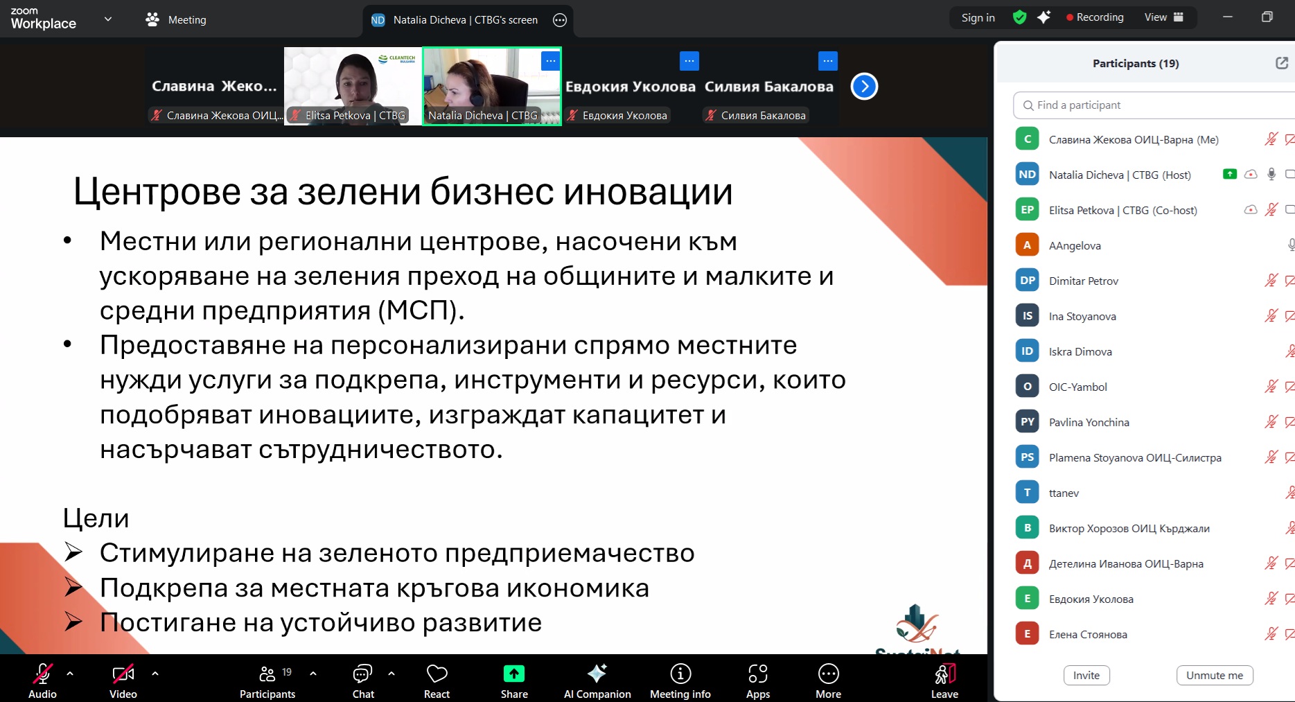 По време на семинара бяха представени резултатите от проучване на местните потребности, свързани с подкрепата за зелена трансформация, както и три конкретни модела на Центрове за зелени бизнес иновации. Чрез интерактивни формати бяха проведени дискусии за обмен на идеи, които да допринесат за финализирането на концепцията и за гарантиране на нейната практичност и устойчивост на местно ниво.