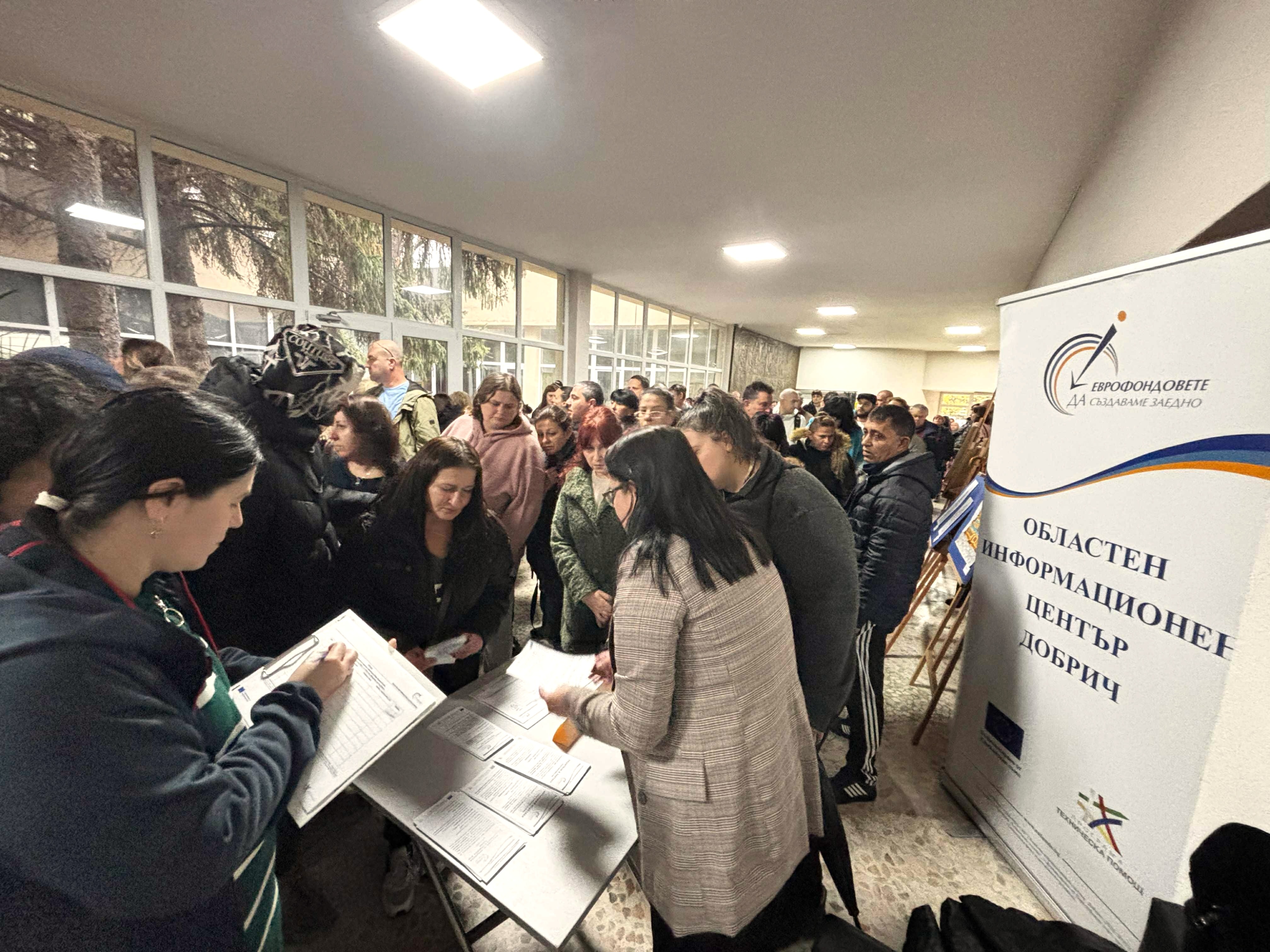 Експертите от ОИЦ-Добрич предоставиха информация на многобройните посетители относно възможностите за обучения и заетост, финансирани със средства от Европейските фондове. Безработните и неактивни лица проявиха силен интерес към предстоящата процедура „Насърчаване на предприемачеството в Северна България“ по Програма „Развитие на човешките ресурси" 2021-2027 г. По нея се предвижда до 50 000 лева безвъзмездна помощ за стартиране на собствен бизнес. Отправени бяха и запитвания свързани с изискванията по проект „Започвам работа – Компонент 2 „Обучение" на Агенцията по заетостта.