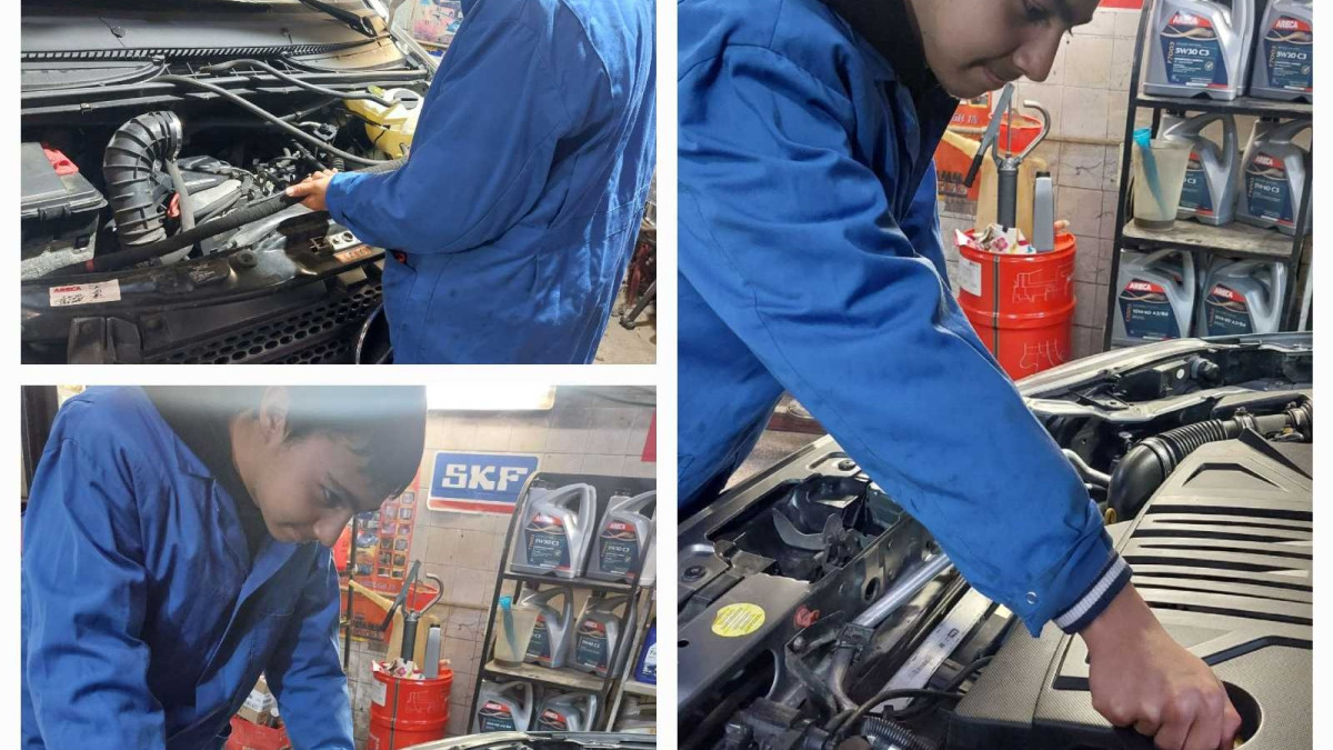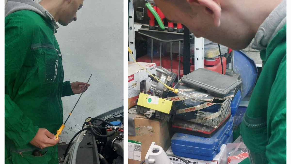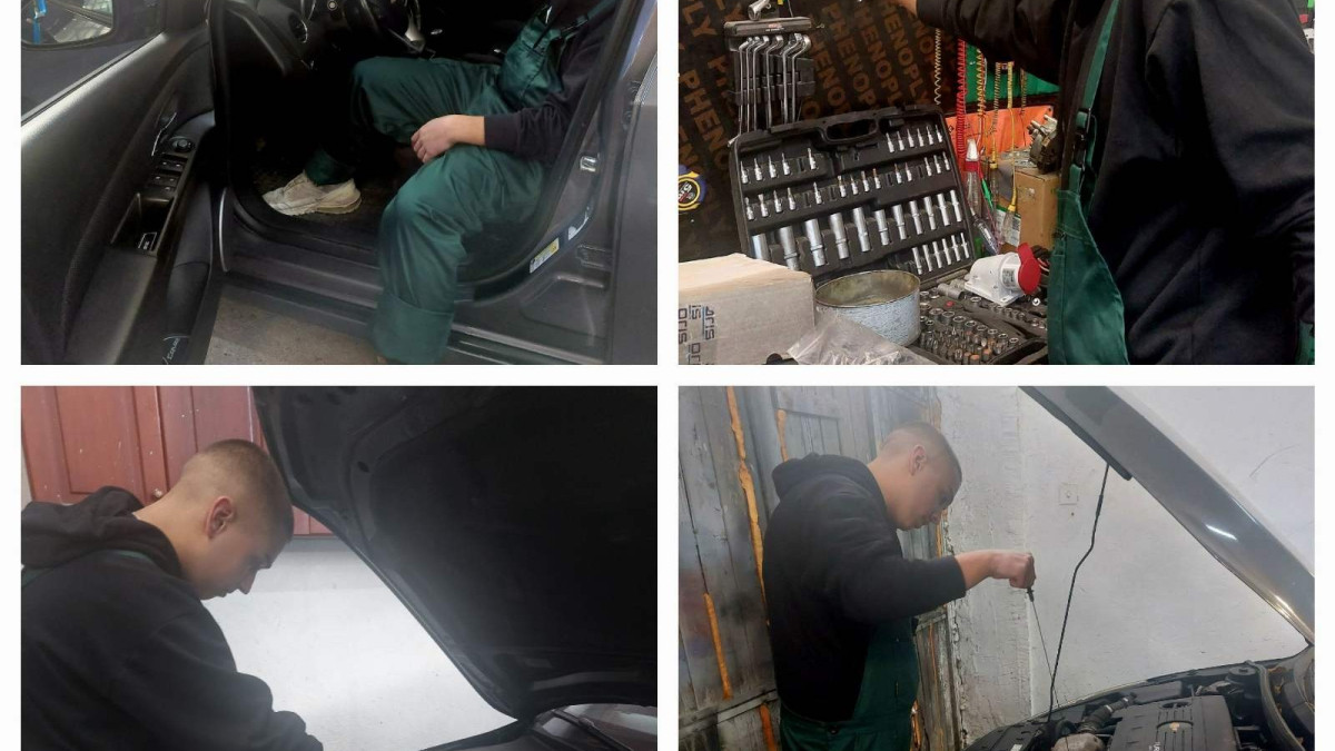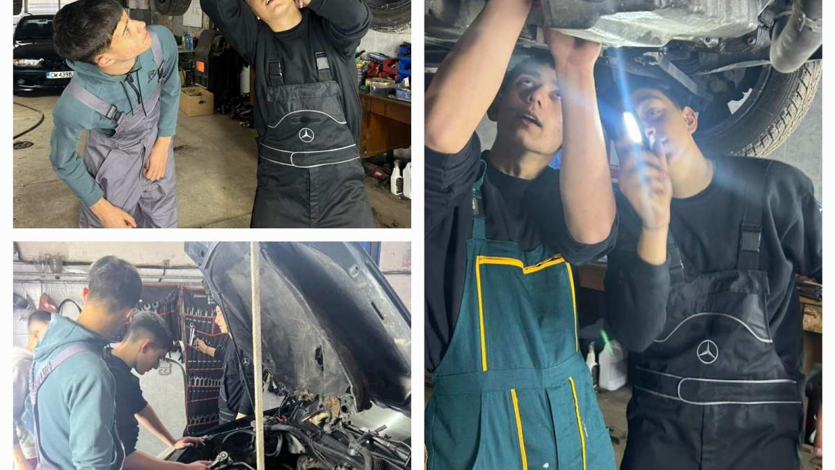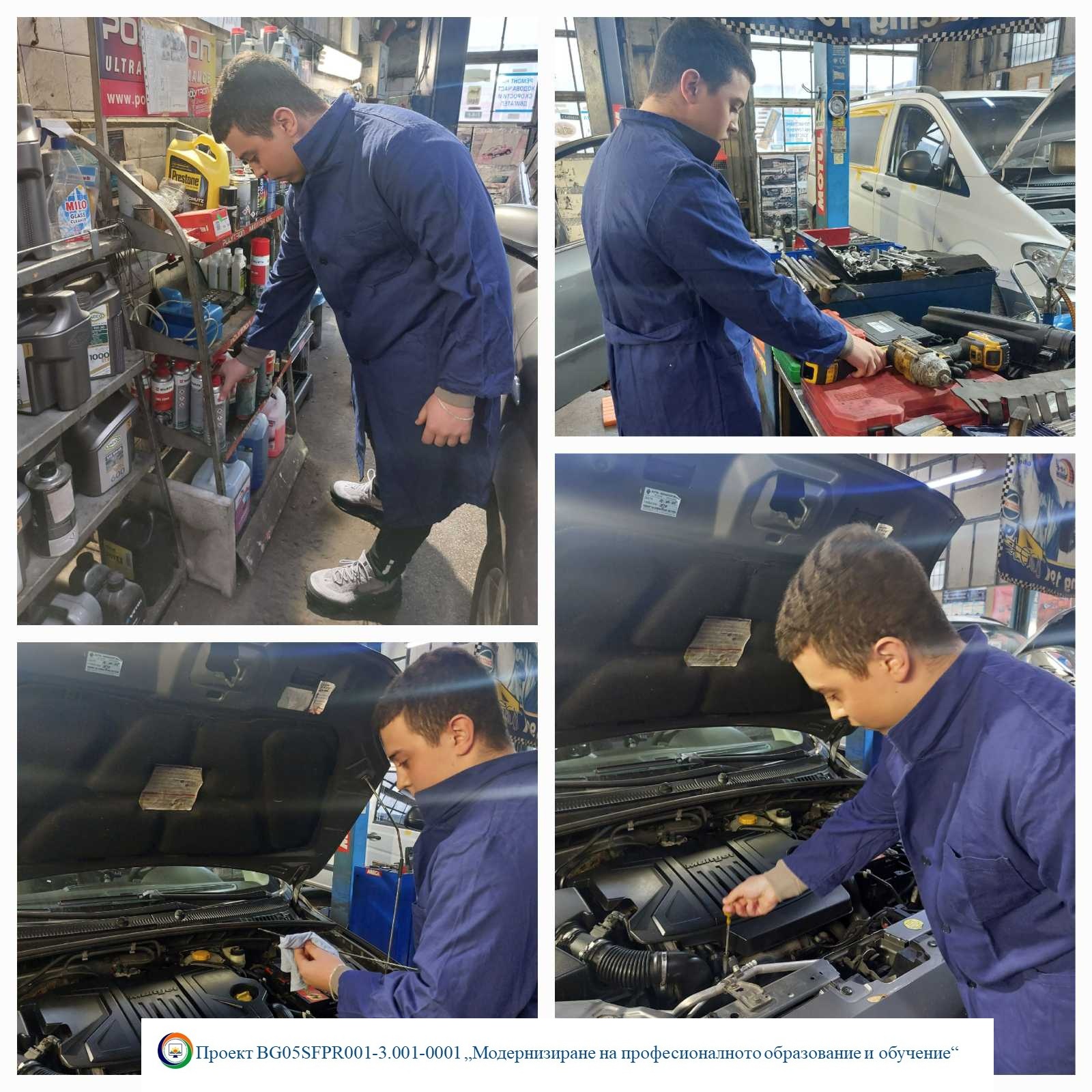 След запознаване с работното облекло и правилата за здравословни и безопасни условия на труд при работа в автосервиз започна провеждането на практическото обучение на групи ученици от 10 и 11 клас, специалност „Автотранспортна техника” в реална работна среда.