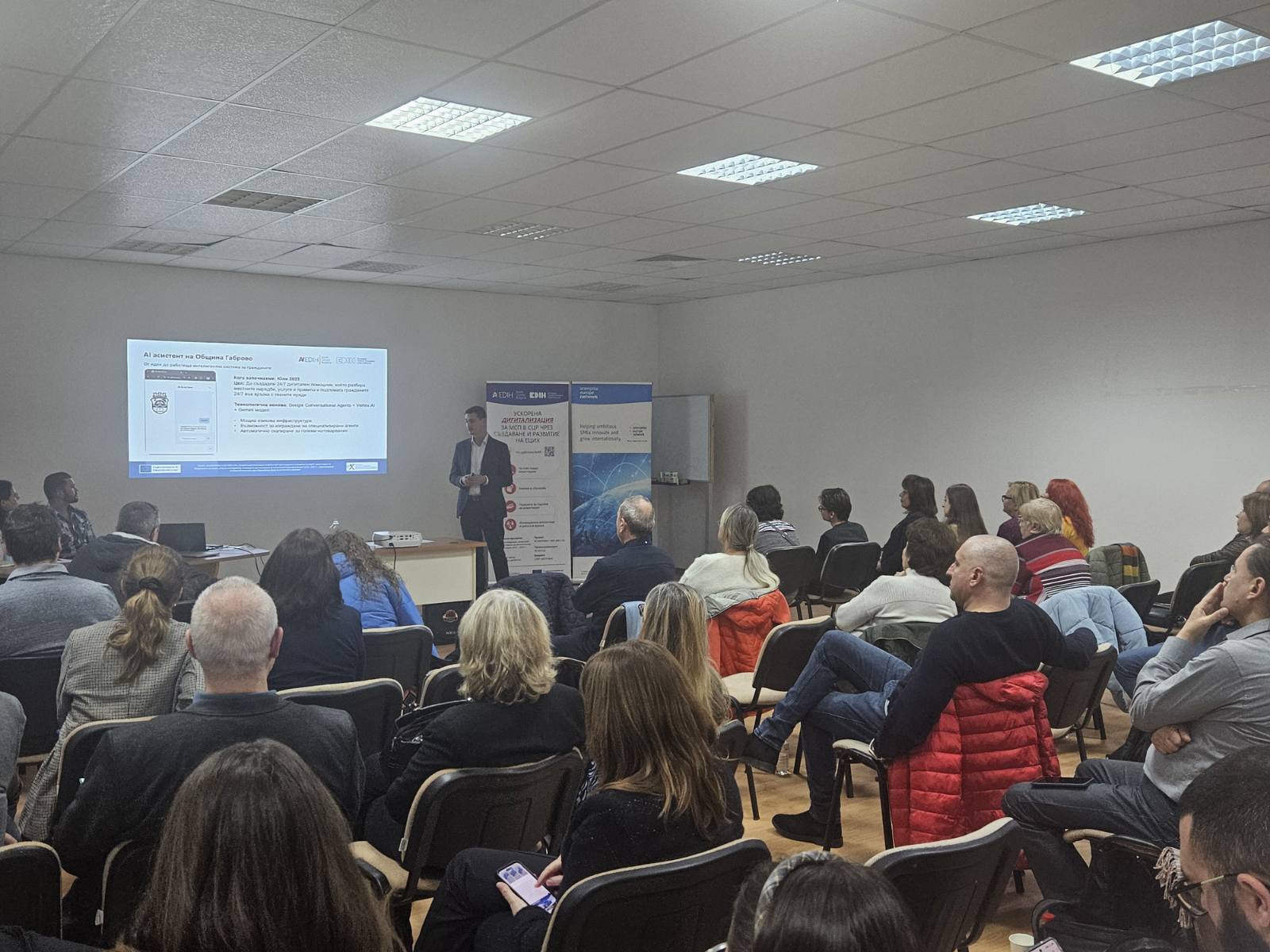 Последва демонстрация на цифров близнак за мониторинг на околната среда, разработен със съдействието на Техническия университет – Габрово и общината, както и представяне на учебни програми и инструмент за диагностика на дигитални таланти, който подпомага организациите при планиране и развитие на квалифицирани кадри.