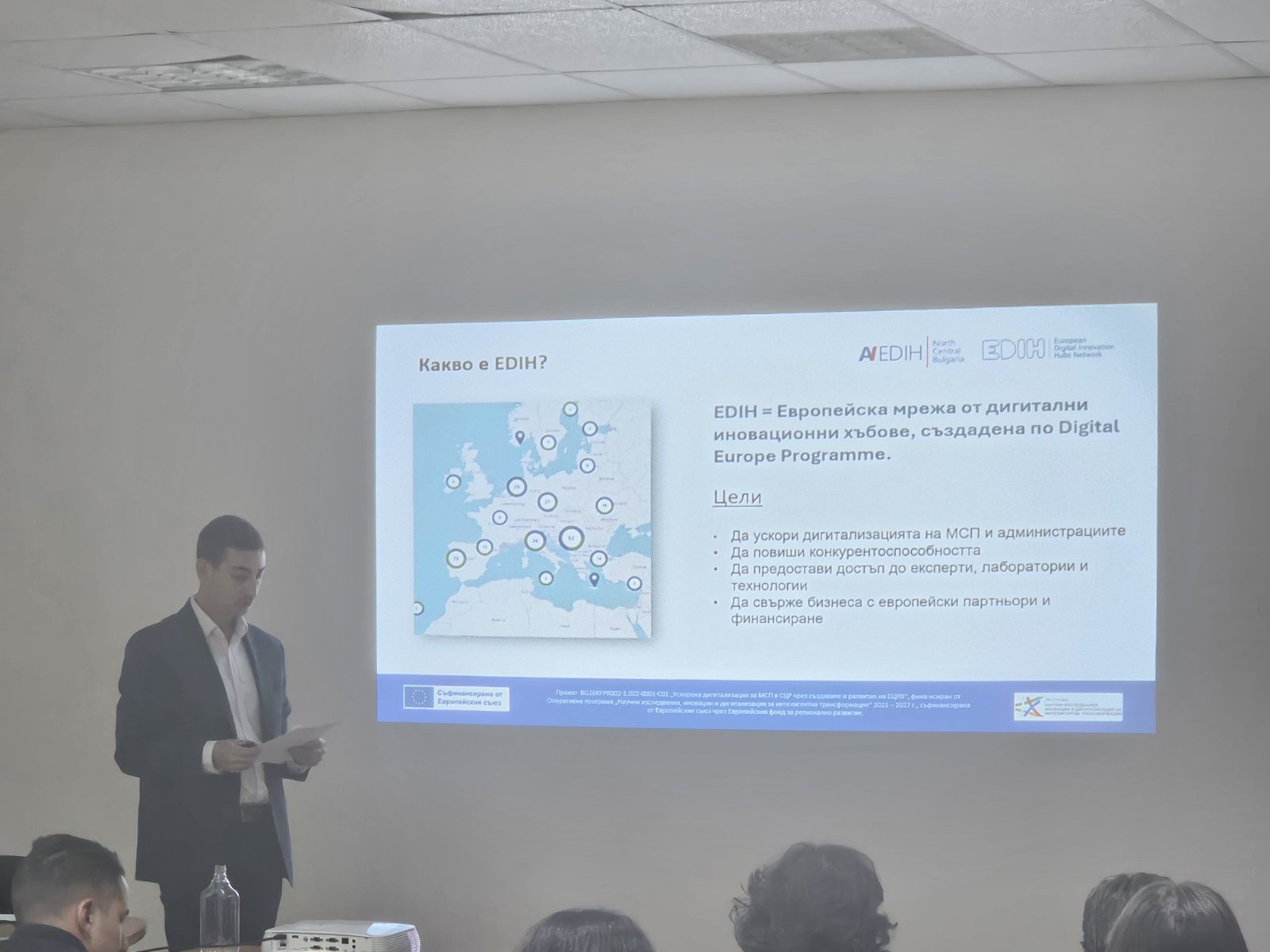 В Габрово се проведе Ден на отворените врати на Европейския цифров иновационен хъб (ЕЦИХ) за Северен централен район – структура, съфинансирана от Европейския съюз по линия на Програма „Научни изследвания, иновации и дигитализация за интелигентна трансформация“ 2021–2027 и европейската инициатива за мрежа от цифрови иновационни хъбове. Хъбът има за цел да подпомага предприятията и публичните организации в процеса на дигитализация чрез тестови услуги, внедряване на технологии и обучения.