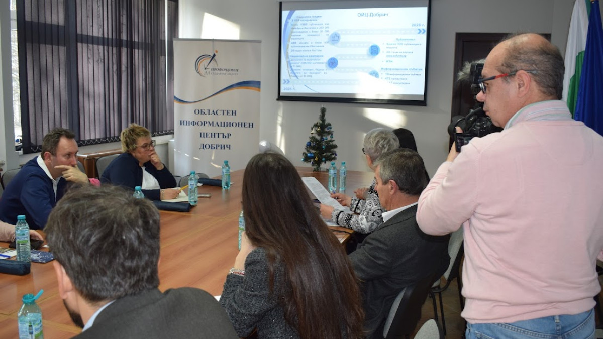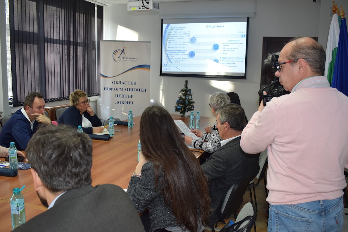 Резултатите от работата на ОИЦ-Добрич бяха представени на 18 декември 2025 г., на традиционната последна за годината среща с медиите. Дейностите на центъра се изпълняват по проект BG16RFTA001-1.006-0002-С02 “Областен информационен център -Добрич 2024-2029 г.“, финансиран  от Програма „Техническа помощ“, съфинансирана от Европейския съюз чрез Европейски фонд за регионално развитие.