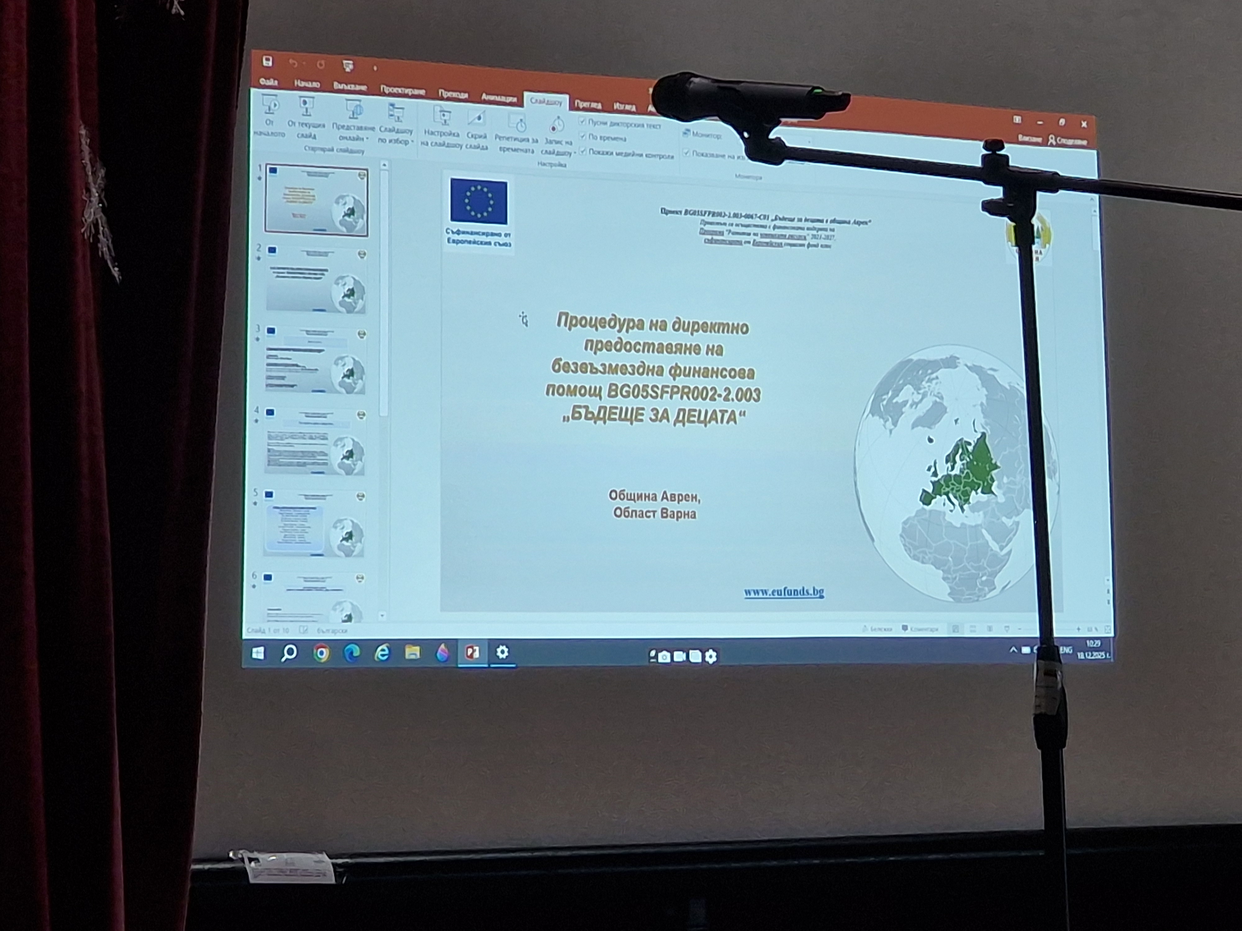 С празничен концерт на талантливи деца, изложба на рисунки и ръчно изработени предмети за благотворителен пазар, бе отбелязан успешният финал на проекта „Бъдеще за децата в община Аврен“. Той е финансиран от Програма „Развитие на човешките ресурси“ 2021-2027 г. Общата му стойност е 391 166 лв. Бенефициент е местната администрация.