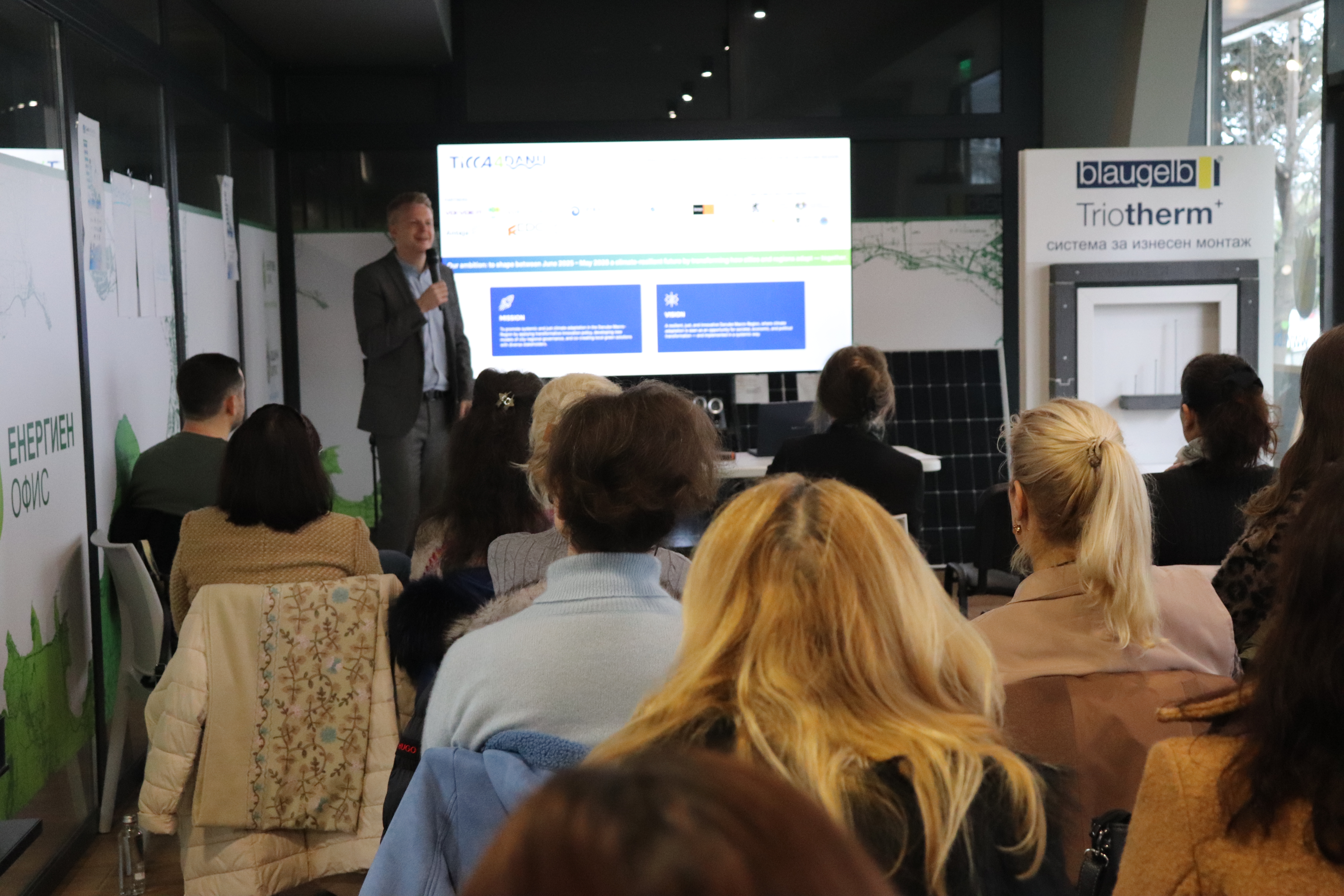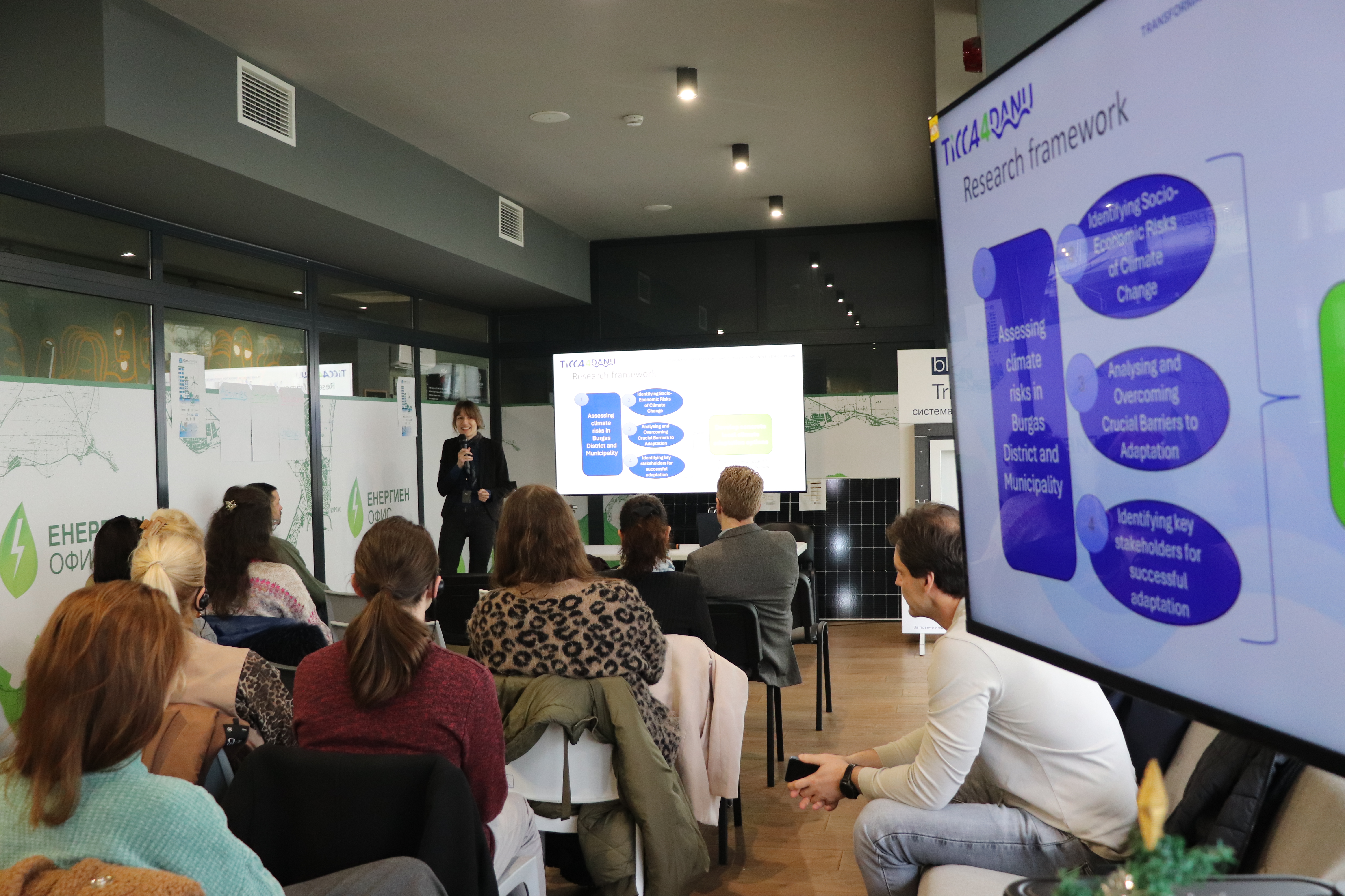 В Енергиен офис Бургас се проведе работна среща в рамките на международния проект TICCA4Danu (Transformative Innovation for Climate Change Adaptation in the Danube Region), финансиран по програма Horizon Europe, в рамките на Мисията на ЕС за адаптация към климатичните промени, за периода 2025–2028 г.