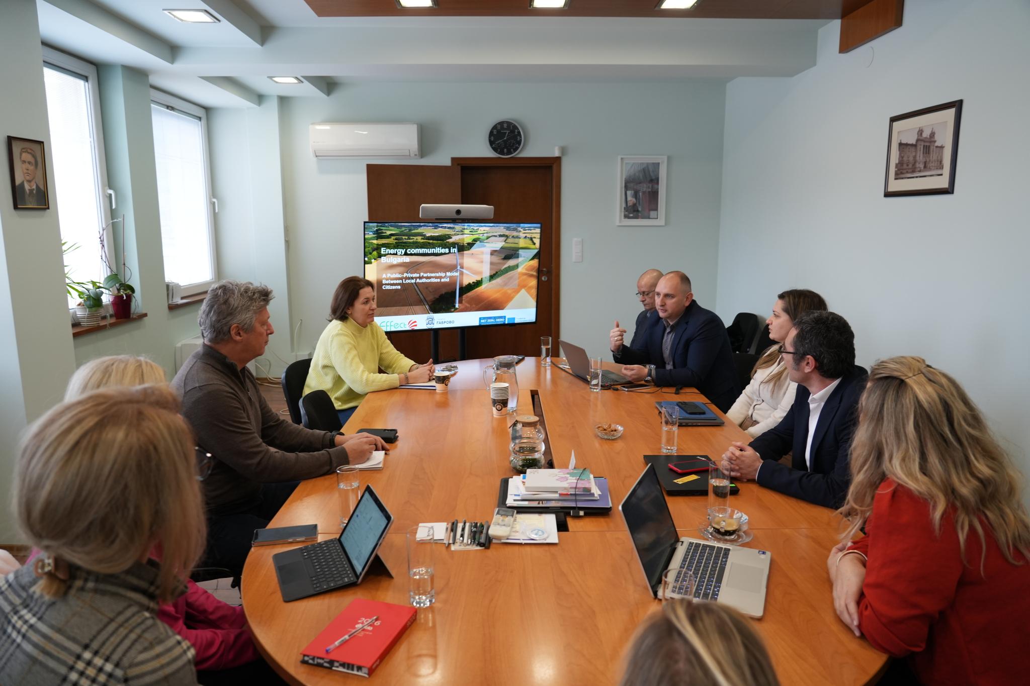 Гостите се запознаха на място с опита на Габрово в развитието на енергийните общности, основните предизвикателства пред тяхното създаване и функциониране, както и с необходимите нормативни, финансови и организационни механизми за устойчивото им развитие.