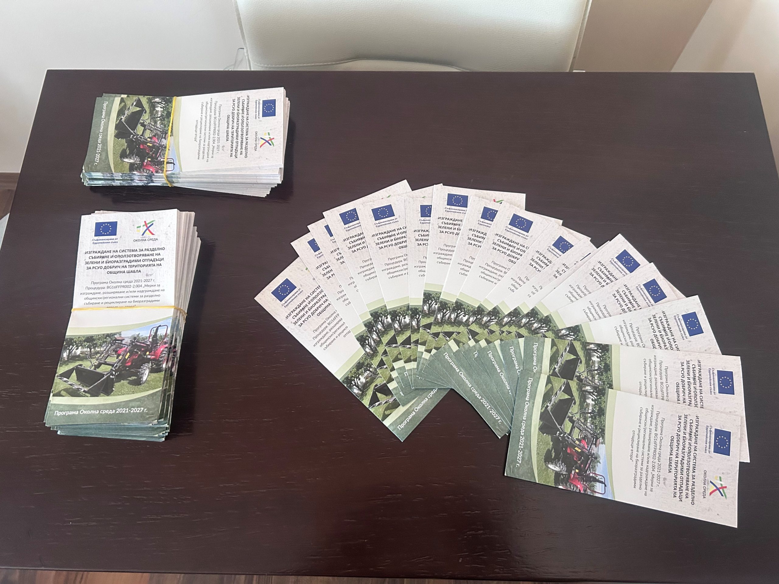 Предвидена е доставка на мобилно оборудване – трактор с челен товарач, шредер за дробене на дърва, сито и съдове за разделно събиране на зелени отпадъци. Планирани са и мерки за информация и публичност, насочени към повишаване на обществената осведоменост и насърчаване на устойчивото поведение при управление на отпадъците чрез информационни материали, медийни и присъствени кампании, и др.