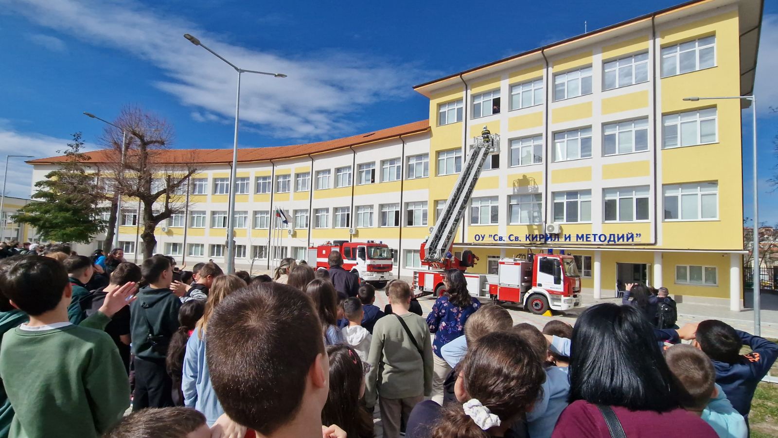Над 60 ученици присъстваха на специализирана лекция, включваща презентация и практически насоки за адекватно поведение при извънредни ситуации, както и разяснения относно правилата за безопасна евакуация. В практическата част се включиха над 200 деца. Екипирани служители на пожарната служба демонстрираха гасене на пожар в учебната сграда и спасителна операция от високите етажи, използвайки специализирана техника и автомобили.