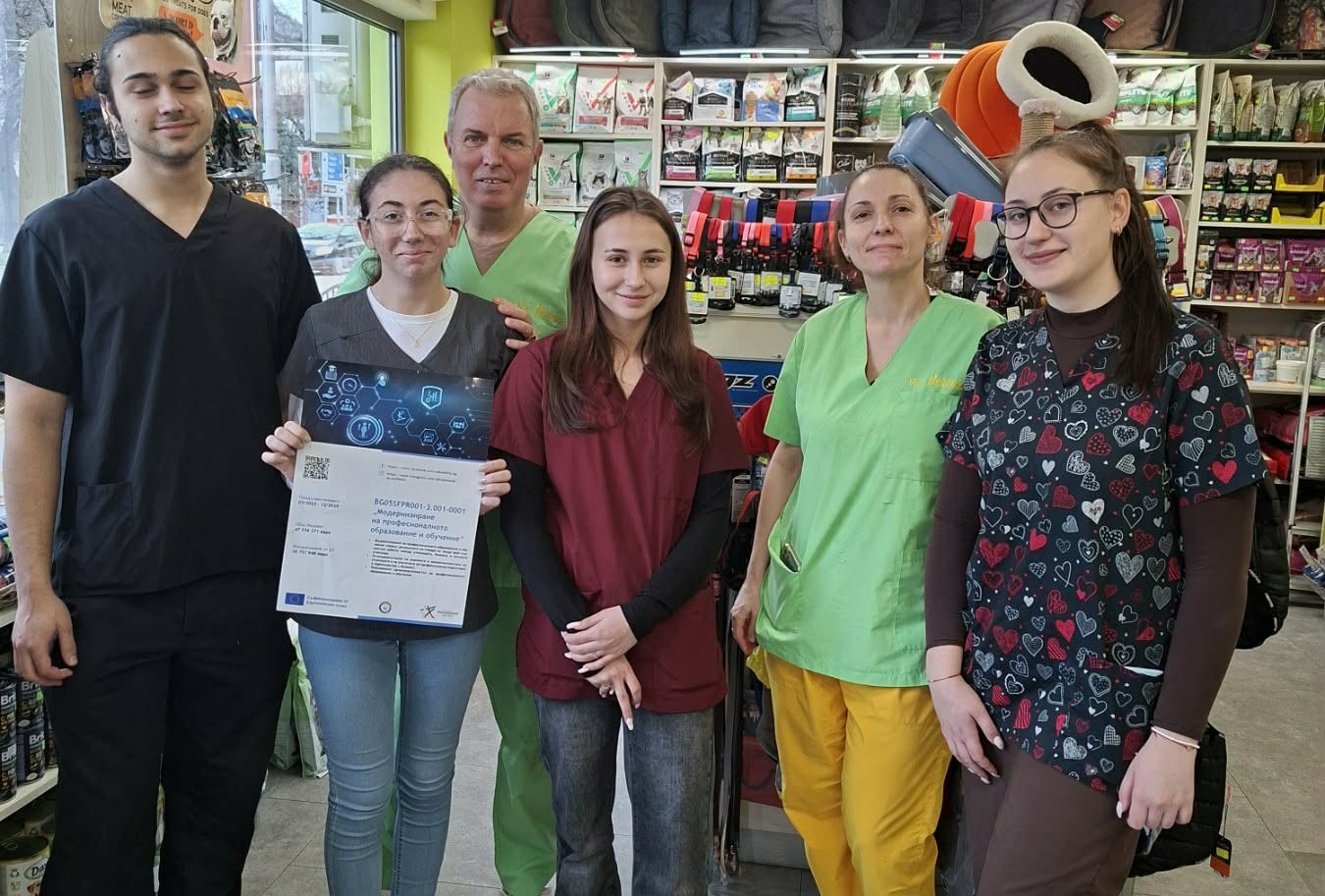 Ученици от Националната професионална гимназия по ветеринарна медицина „Проф. д-р Димитър Димов“ – Ловеч участват активно в Дейност 8 по проект BG05SFPR001-3.001-0001 „Модернизиране на професионалното образование и обучение“. Проектът се реализира по Програма „Образование“ 2021–2027, съфинансирана от Европейския съюз.