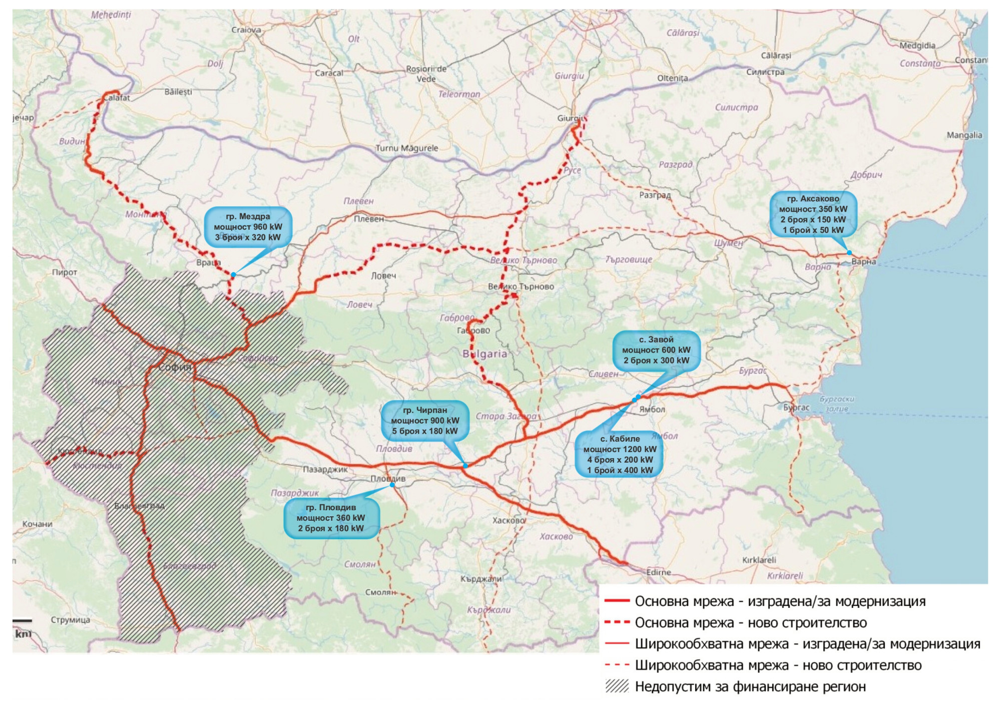 „С тези проекти даваме възможност електромобилите да излязат от града и да тръгнат по автомагистралите, първокласните и скоростните пътища“, добави той. Вицепремиерът съобщи, че зарядните центрове ще бъдат изградени на ключови точки от пътната мрежа – на автомагистрала „Тракия“ при изходите за Чирпан и село Кабиле, на бул. „Асеновградско шосе“ край Пловдив, на път Е-79 в района на Мездра, в местността „Чанлъка“ в Аксаково и в близост до село Завой, област Ямбол.
